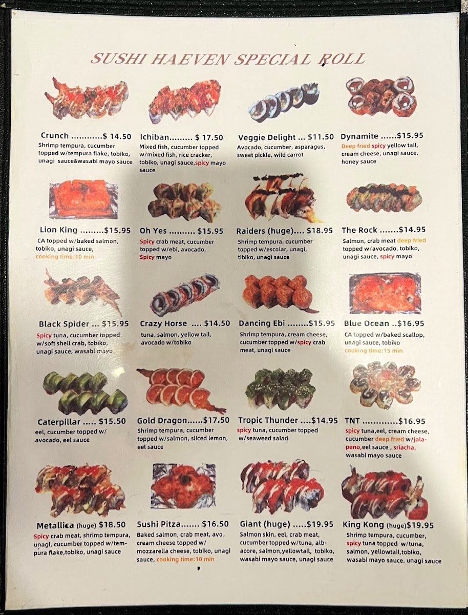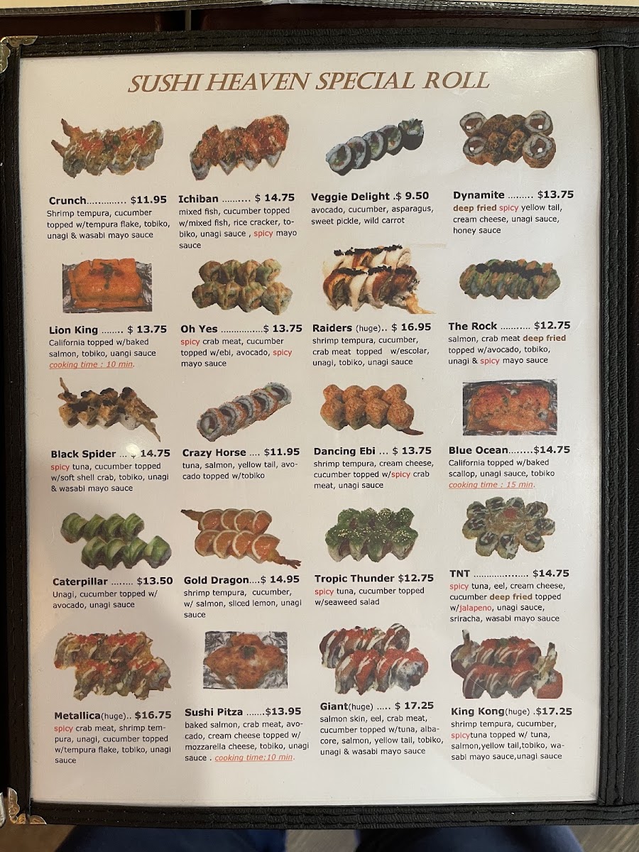 While the service can sometimes experience hiccups, it appears that dedicated staff strive to provide a welcoming experience. Guests have described the atmosphere as "chill," making it a lovely spot to unwind with friends or family. With an array of inventive rolls and classic Japanese dishes, Sushi Heaven continues to evolve while staying true to its roots.